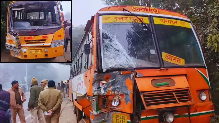 हाथरस: उत्तर प्रदेश के हाथरस जिले से घने कोहरे के कारण हादसे की खबर सामने आई है। आगरा-अलीगढ़ नेशनल हाइवे-93 पर स्थित गांव जरैया मोड़ के पास एक्सिडेंट हो गया। यहां एक रोडवेज बस और दिल्ली पब्लिक स्कूल (डीपीएस) की बस के बीच जोरदार भिड़ंत हो गई। टक्कर इतनी भीषण थी कि दोनों बसों के अगले हिस्से पूरी तरह क्षतिग्रस्त हो गए। इस हादसे में स्कूल बस के चालक एवं परिचालक सहित रोडवेज में सवार एक वृद्ध महिला गंभीर रूप से घायल हो गई। दुर्घटना के बाद मौके पर राहगीरों की भारी भीड़ जमा हो गई, जिससे हाइवे पर यातायात बाधित हो गया।
