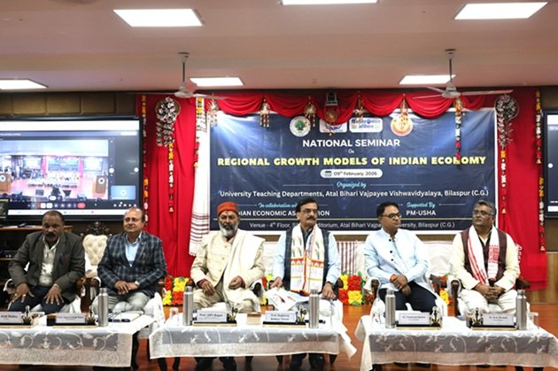 बिलासपुर। अटल बिहारी वाजपेई विश्वविद्यालय, बिलासपुर में 9 फरवरी को ‘रीजनल ग्रोथ मॉडल ऑफ इंडियन इकोनॉमी’ विषय पर एक दिवसीय राष्ट्रीय संगोष्ठी का आयोजन किया गया। कार्यक्रम का आयोजन वाणिज्य एवं वित्तीय अध्ययन विभाग द्वारा किया गया, जिसके संयोजक विभागाध्यक्ष डॉ. अतुल दुबे रहे। उन्होंने कार्यक्रम की प्रस्तावना रखते हुए संगोष्ठी के उद्देश्यों पर प्रकाश डाला।