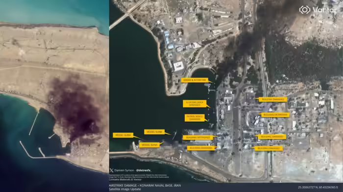 प्लैनेट लैब्स की तरफ से जारी की गई तस्वीरों में रात में ली गई बंदर अब्बास नेवस बेस की स्थिति का पता चलता है। इस बेस पर ईरानी नेवी का मुख्य हेडक्वार्टर और इसके कई सबसे काबिल जहाज और सबमरीन तैनात रहते हैं। तस्वीरों में नेवल बेस के ज्यादातर हस्से में घना काला धुआं देखा जा सकता है। एक जगह पर धुएं का गुबार उठ रहा है। फैसेलिटी के कई हिस्सों पर हमले का असर देखा जा सकता है। तस्वीरों के आकलन से पता चलता है कि फ्लोटिंग डॉक को गंभीर नुकसान पहुंचा है, पेट्रोल बोट डैमेज हो चुके हैं, बिल्डिंग पूरी तरह से ध्वस्त हो चुका है।