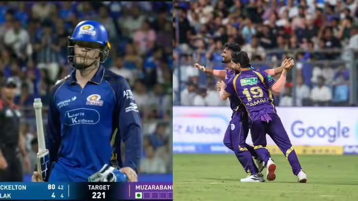 दरअसल, मुंबई इंडियंस की पारी का 16वां ओवर डालने ब्लेसिंग मुजरबानी आए थे। उनके ओवर की दूसरी गेंद पर रियान रिकेल्टन स्ट्राइक पर थे। रिकेल्टन ने लॉन्ग ऑफ की तरफ शॉट खेला और 1 रन ले लिया। इसके बाद रिकेल्टन दूसरे रन के लिए भी क्रीज से बाहर आ गए थे। लेकिन तिलक वर्मा ने उन्हें मना कर दिया। अनुकूल रॉय ने नॉन स्ट्राइकर एंड पर डायरेक्ट थ्रो किया।