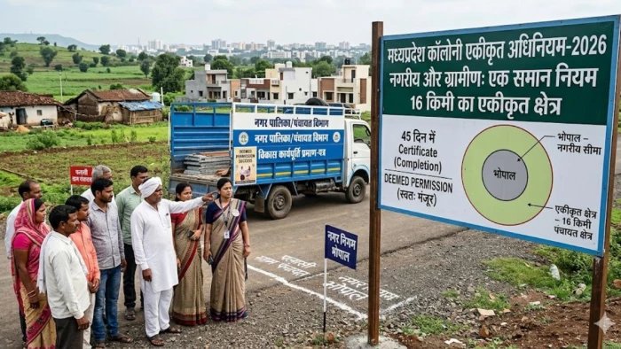 भोपाल। मध्यप्रदेश में अब शहर और गांव की कॉलोनियों में कोई भेदभाव नहीं होगा, जिनमें एक समान नियम लागू होंगे। नगरीय सीमा से 16 किलोमीटर का क्षेत्र मध्यप्रदेश कॉलोनी एकीकृत अधिनियम-2026 में शामिल होगा। इससे पंचायतों में भी वही नियम लागू होंगे, जो अभी नगरीय निकायों में होते हैं। ऐसे में ग्रामीण क्षेत्रों में कटने वाली अवैध कॉलोनियों पर रोक लग सकेगी। पांच साल की तय अवधि में कॉलोनी विकसित होने के बाद 45 दिन में कार्यपूर्ति प्रमाण-पत्र मिल जाएगा, जिससे डीम्ड परमिशन (स्वत: मंजूर) की व्यवस्था लागू मानी जाएगी।