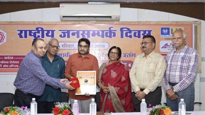 भोपाल। पब्लिक रिलेशंस सोसाइटी ऑफ इंडिया की भोपाल इकाई द्वारा ‘राष्ट्रीय जनसंपर्क दिवस-2026’ के अवसर पर 26 अप्रैल को जेके अस्पताल के सीएमई हॉल में कार्यक्रम आयोजित किया गया। इस कार्यक्रम में पत्रकारिता-जनसंपर्क क्षेत्र में उल्लेखनीय योगदान देने वाले व्यक्तित्वों को सम्मानित किया गया। इस श्रृंखला में जनसंपर्क विभाग के उप संचालक सुनील वर्मा को उनके उत्कृष्ट कार्यों के लिए ‘लोक संपर्क सम्मान’ प्रदान किया गया।