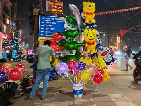 नए साल पर बच्चों और सजावट के लिए बैलून की भी खूब मांग देखने को मिली। शहर के श्याम टॉकीज रोड, स्टेशन रोड, शहीद चौक, कमला नेहरू पार्क और चक्रधर नगर चौक के आसपास गुब्बारों की दुकानें लगी रहीं। रंग-बिरंगे बैलून लोगों का खासा ध्यान आकर्षित करते नजर आए।