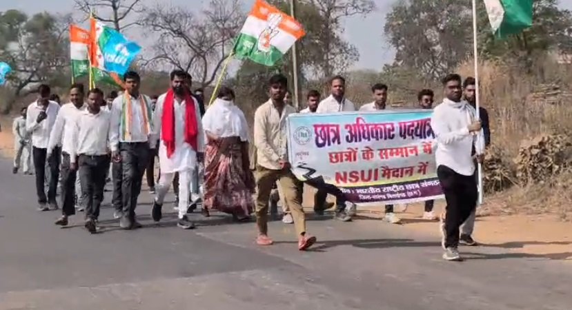 सरसिंवा में कॉलेज की मांग को लेकर 16 किमी छात्र अधिकार पदयात्रा, कांग्रेस-NSUI का प्रदर्शन